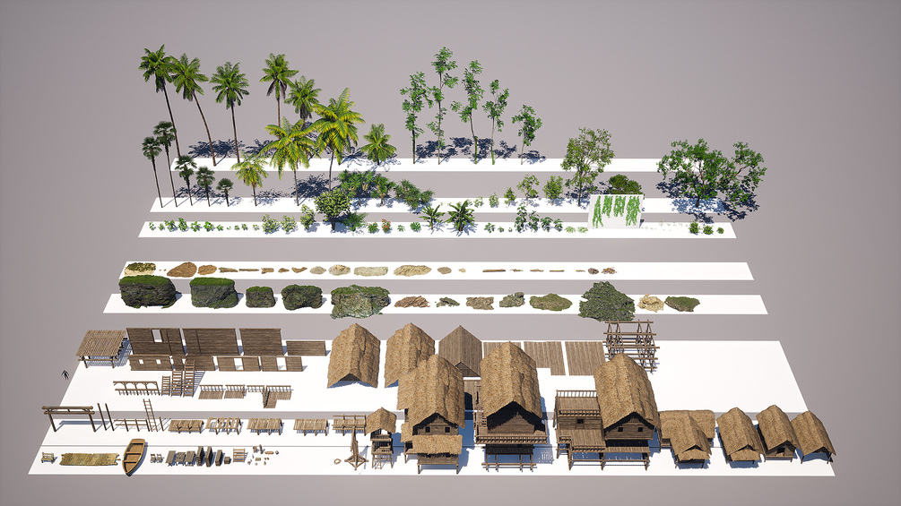 - Includes Bundle of Tropical Biomes and Tropical Traditional Village Style Buildings and props